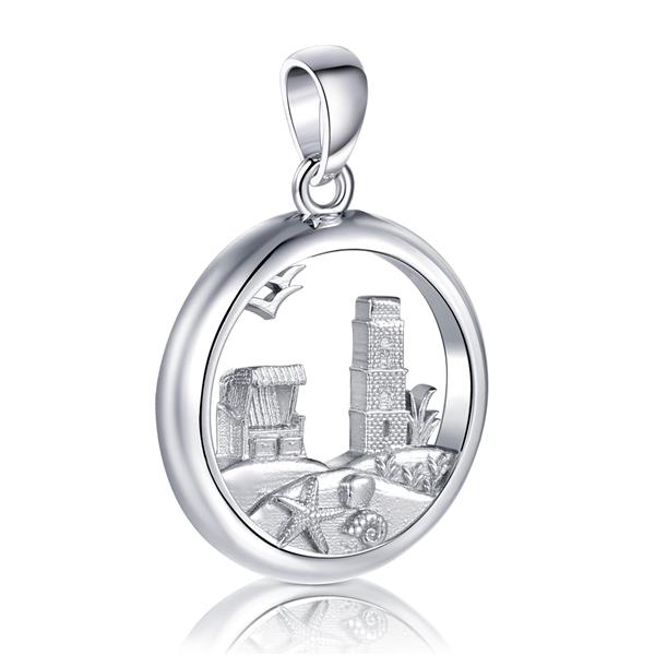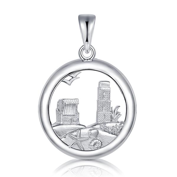 Alter Leuchtturm mit Strandkorb Anhänger in 925er Silber rhodiniert.