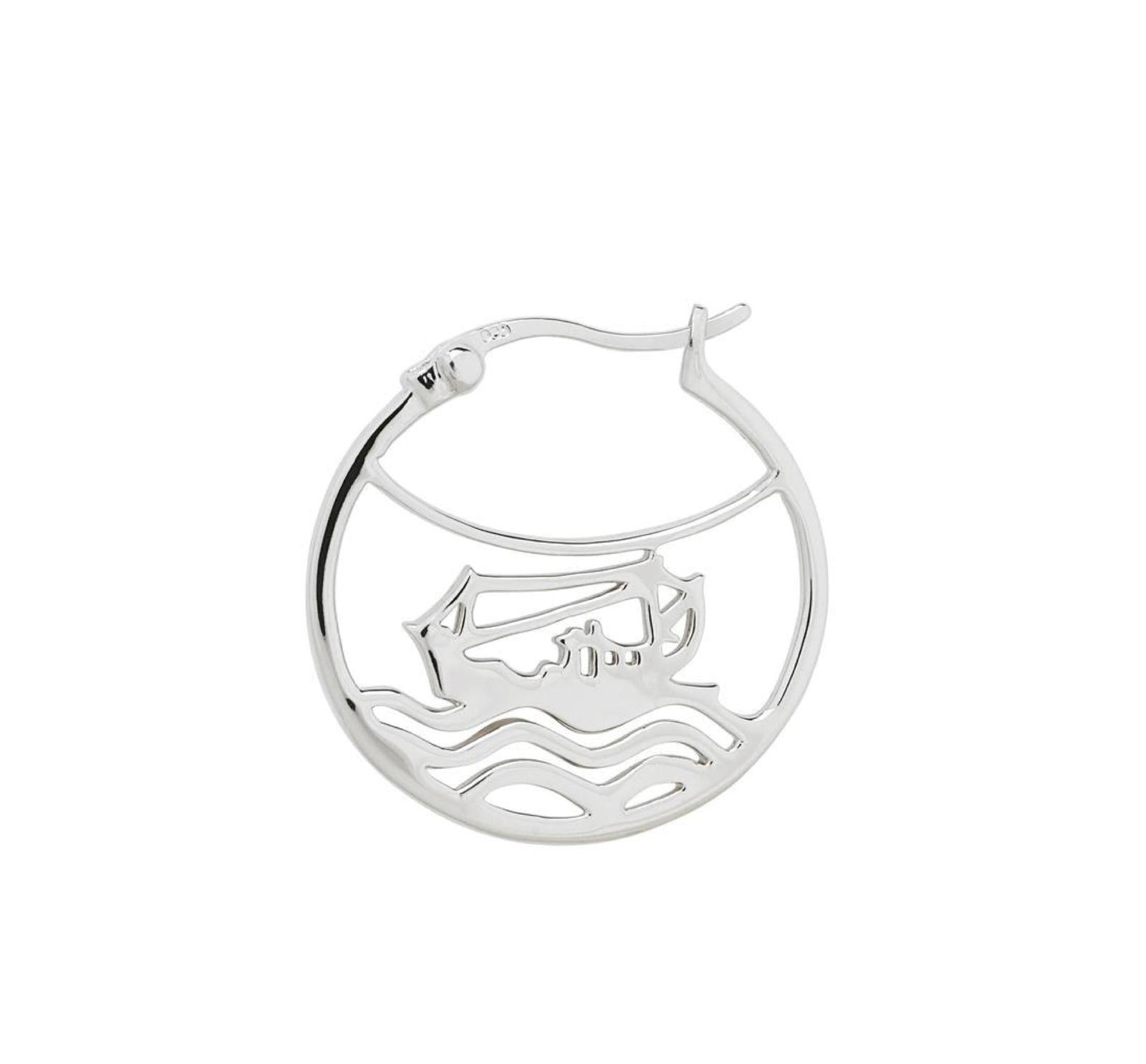 Seemannsohrring, Creole mit Garnelenboot, Fischercreole, 925 Silber.